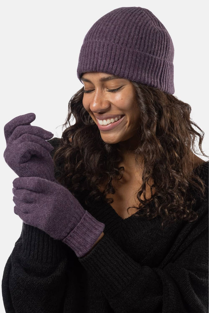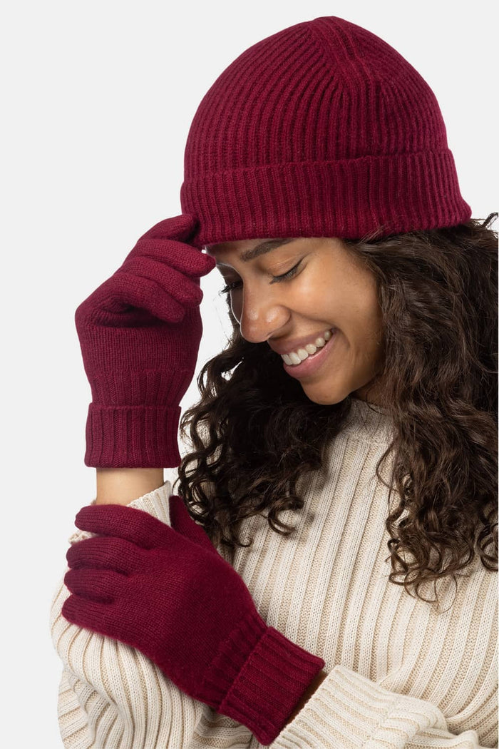 Women's 2pc 100% Cashmere Ribbed Beanie Hat & Glove Set with Gift Box