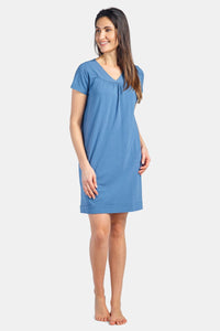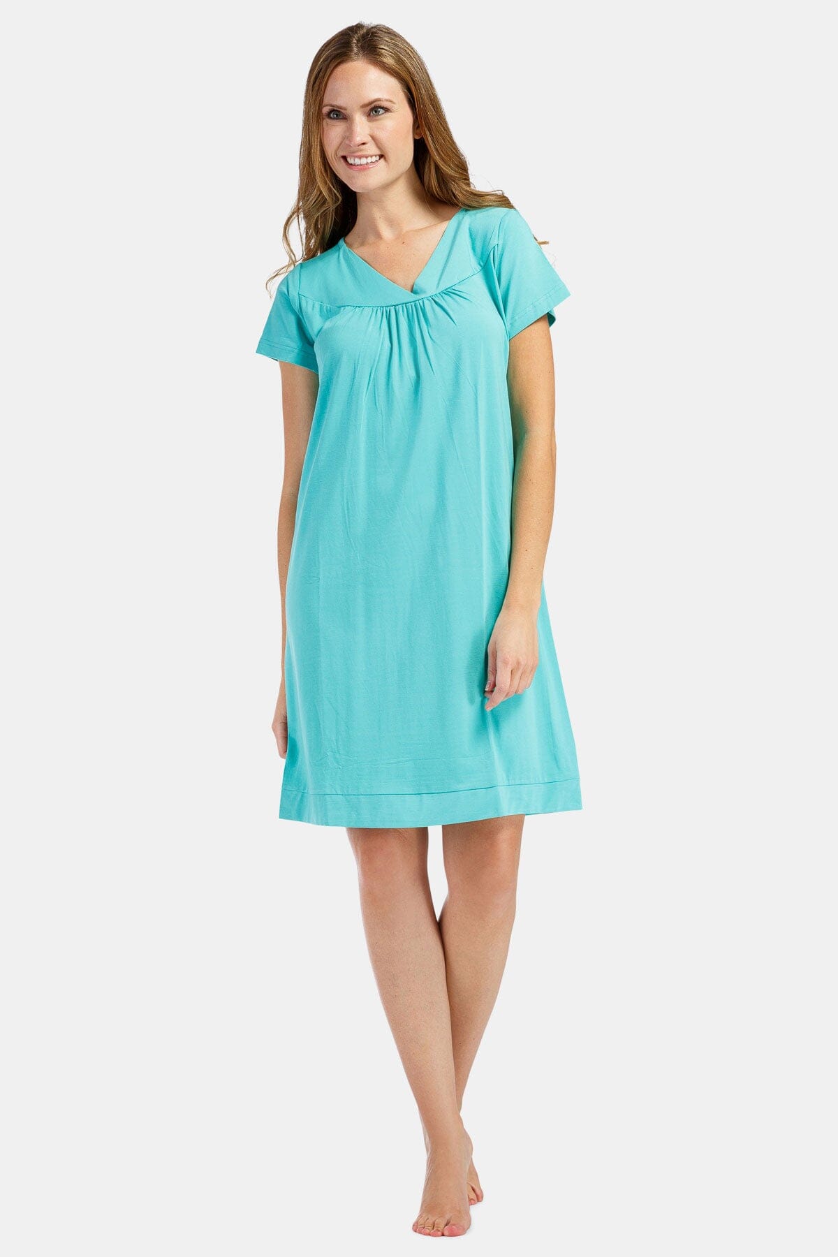 Designed for comfort, this nightgown has a relaxed fit, gathered yoke detail and short sleeves. The v-neckline and bottom band give it a flattering look through subtle details.